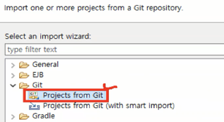이번엔 Git 폴더에서 Projects from git 클릭하고 Exisiting 클릭 후 넥스트