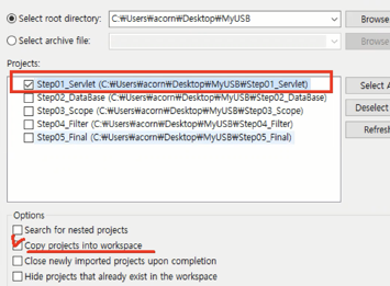 따로 가져오는 것도 가능하며 중요한 부분은 밑의 Copy project ~ 꼭 클릭해줘야 한다