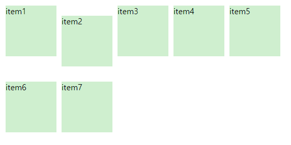 우선 items라는 부모 박스로 7개의 item 자식 박스를 감쌌다
